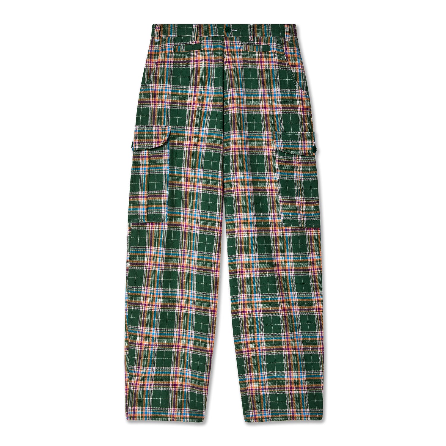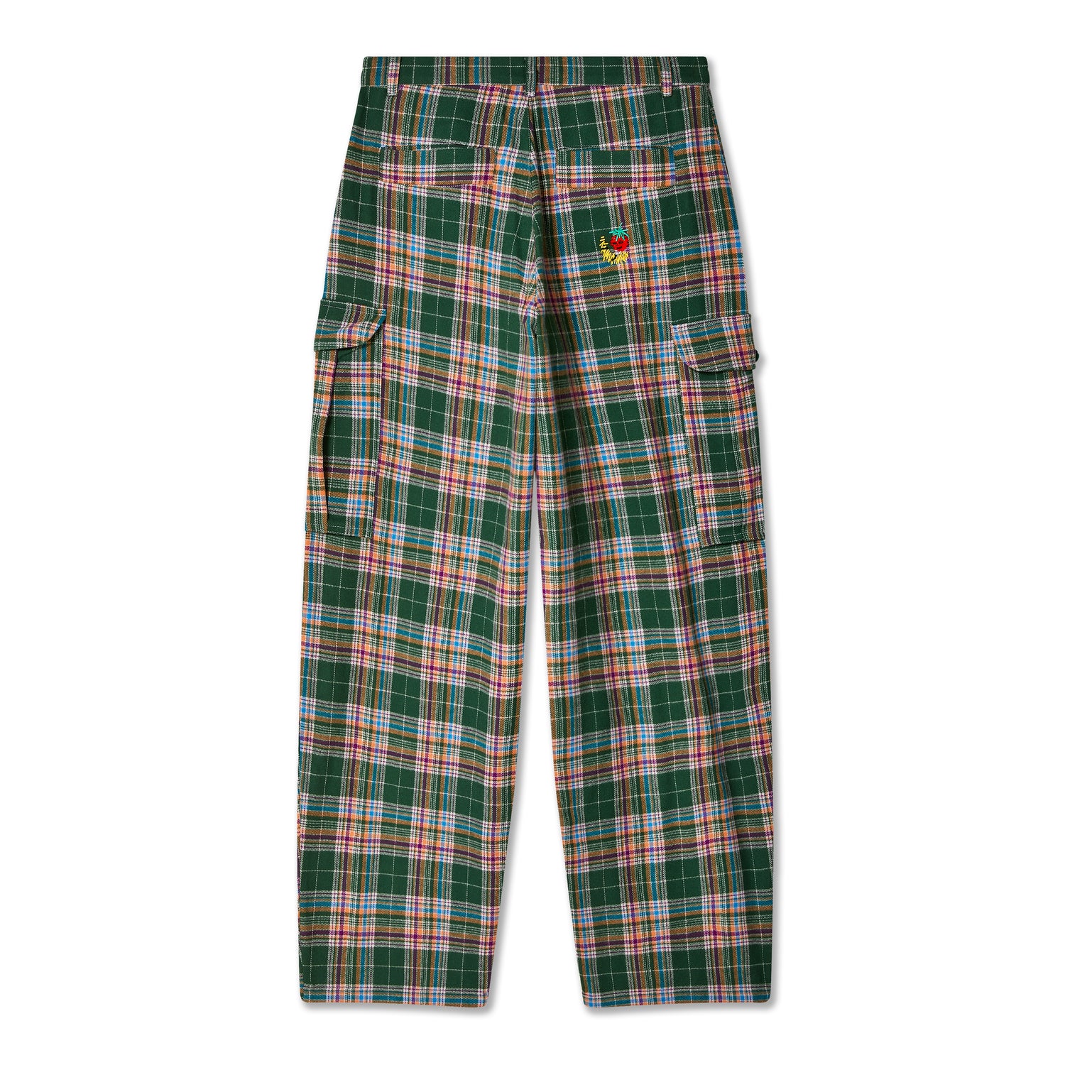 In a green & red plaid pattern, the pants features a slouchy, relaxed fit and there are two roomy pockets on both thighs.