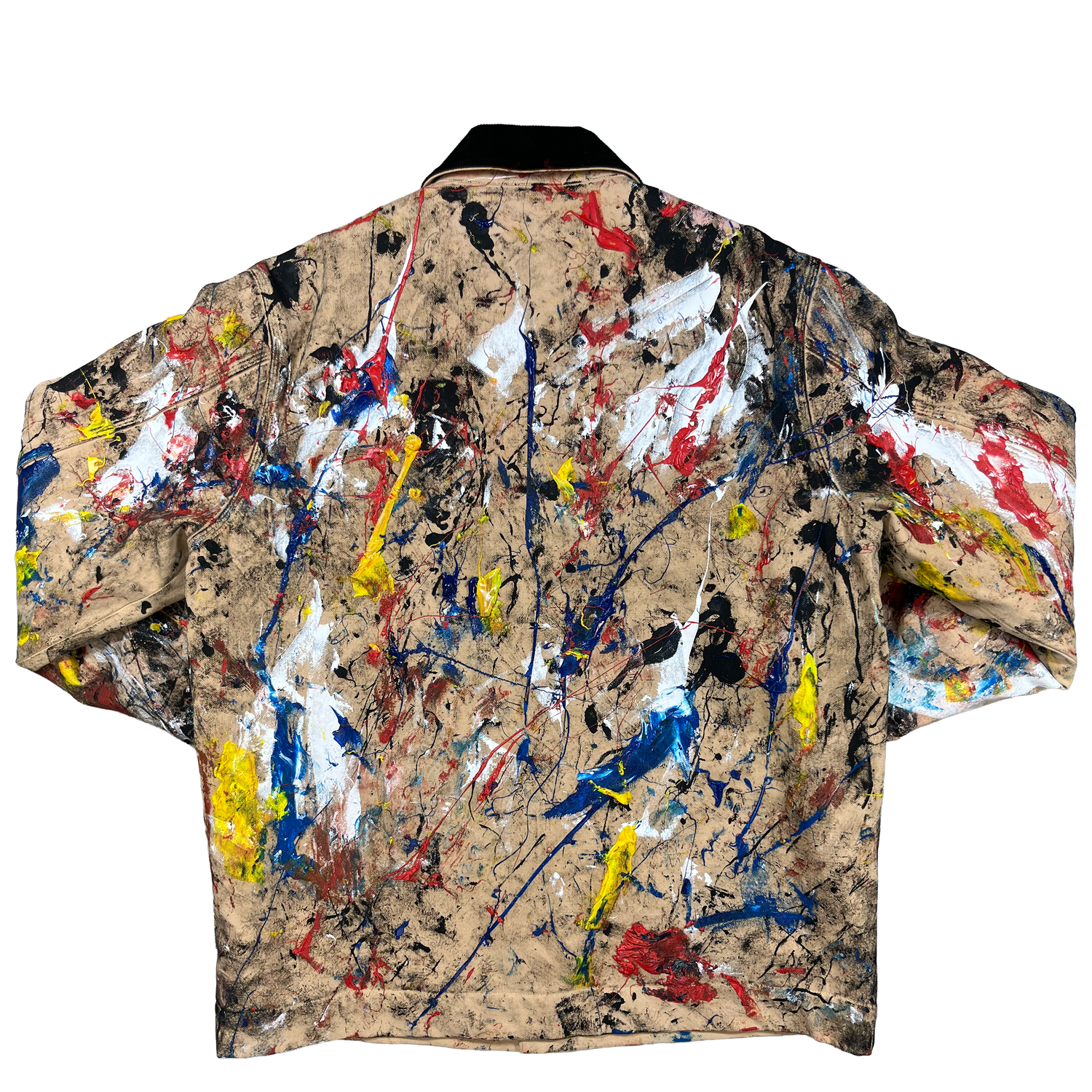 Cotton chorecoat made in Portugal, hand-painted in Paris. Features “Feed the People, Food is Power” button detailing, contrast corduroy collar, and SHF logo embroidery on the chest. Lining OEKO-TEX certified, supplier part of Better Cotton Initiative alliance.