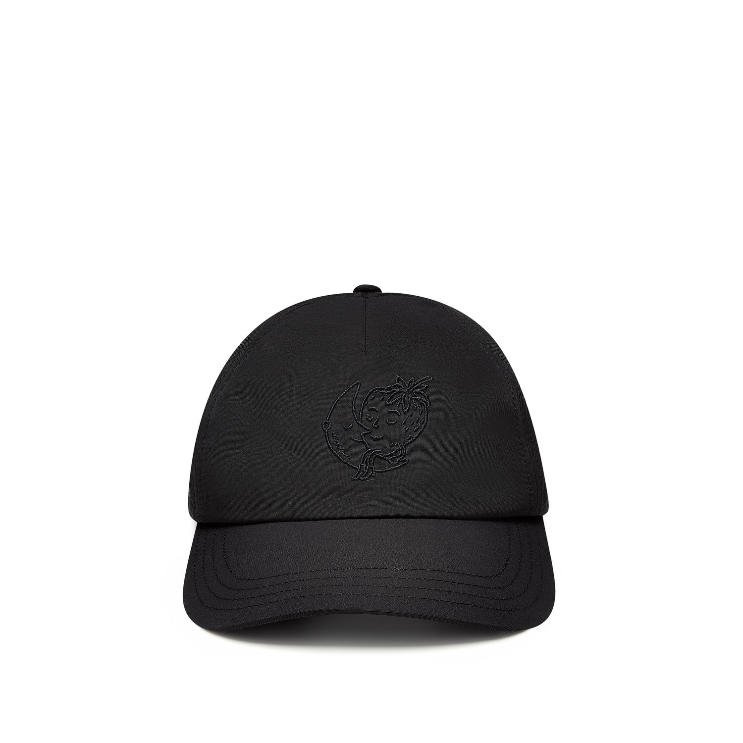 This classic baseball hat features our Strawberry Moon classic logo patch rendered in black on the front crown.