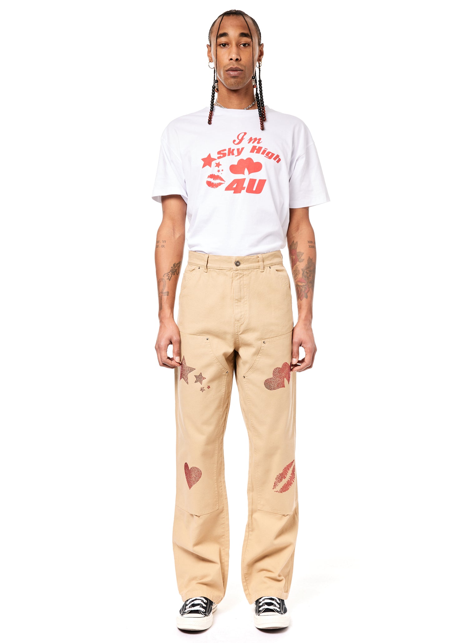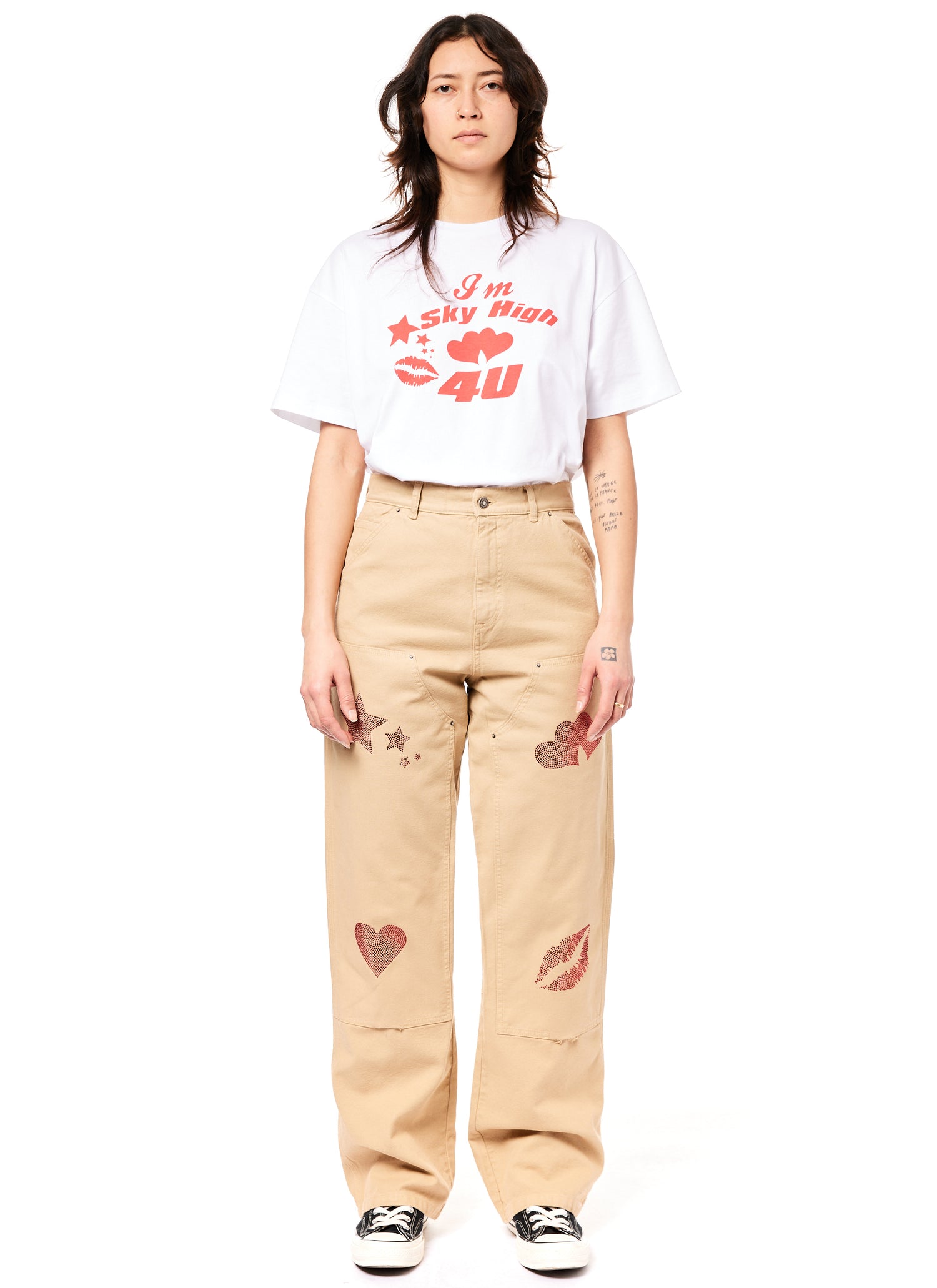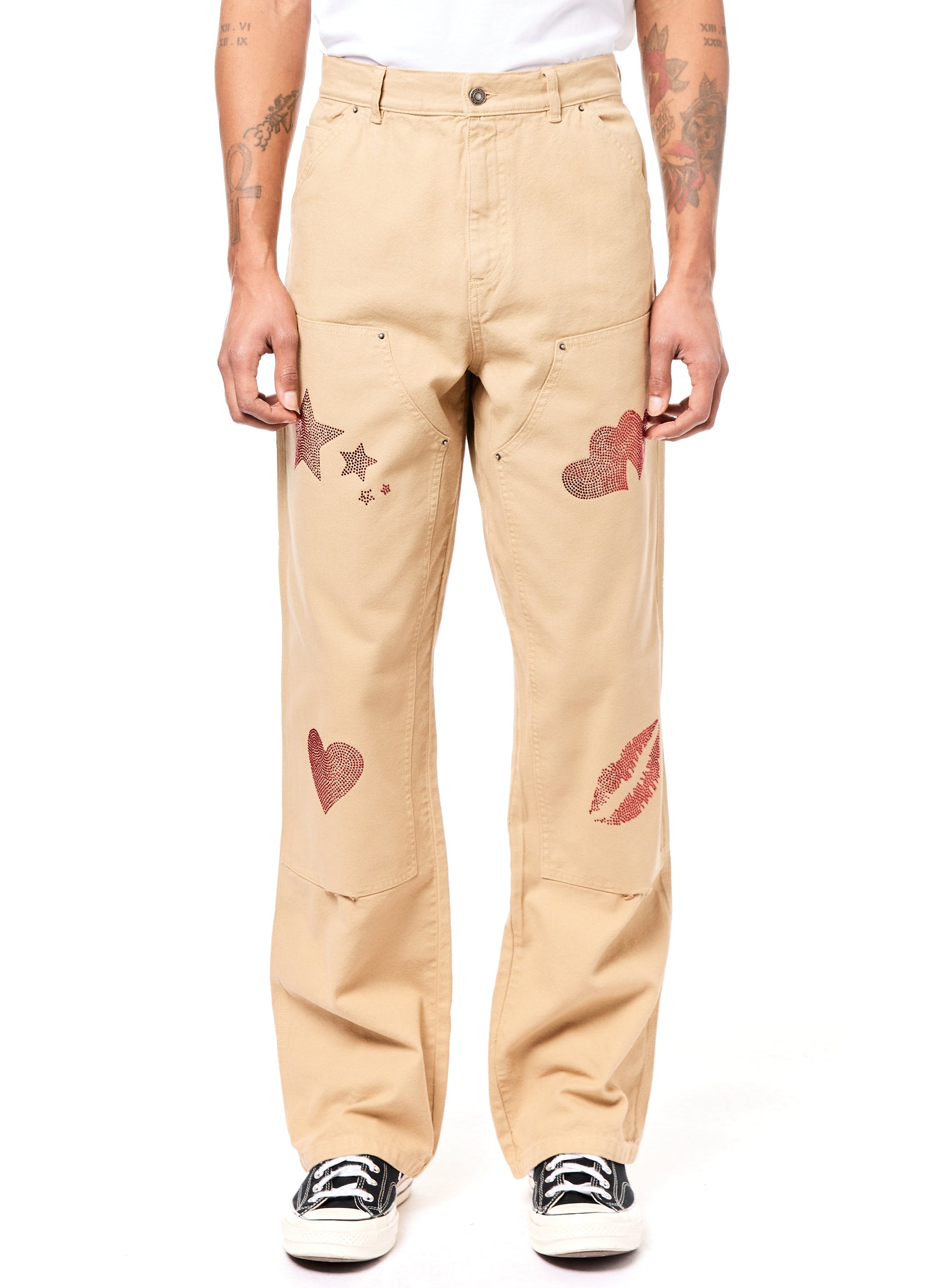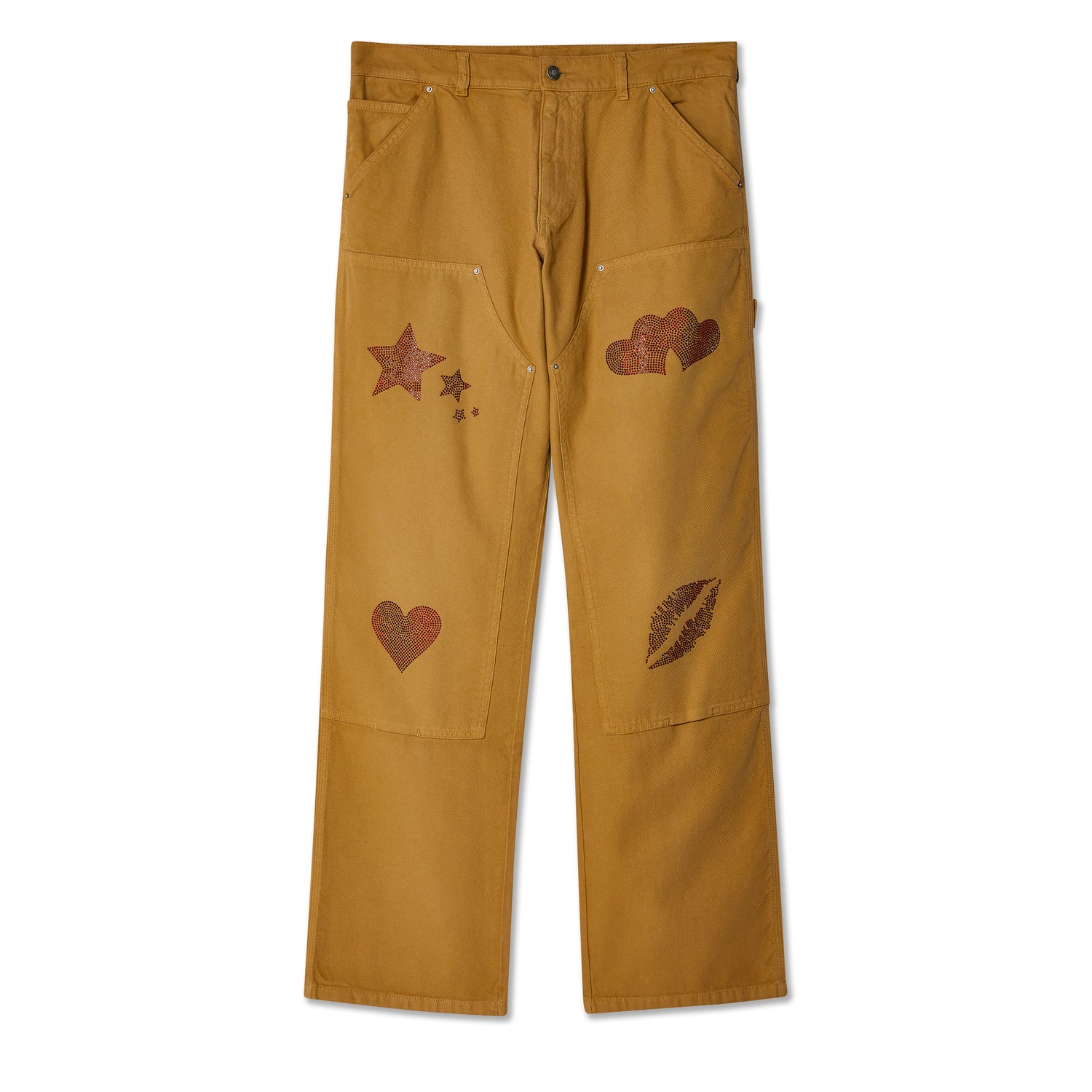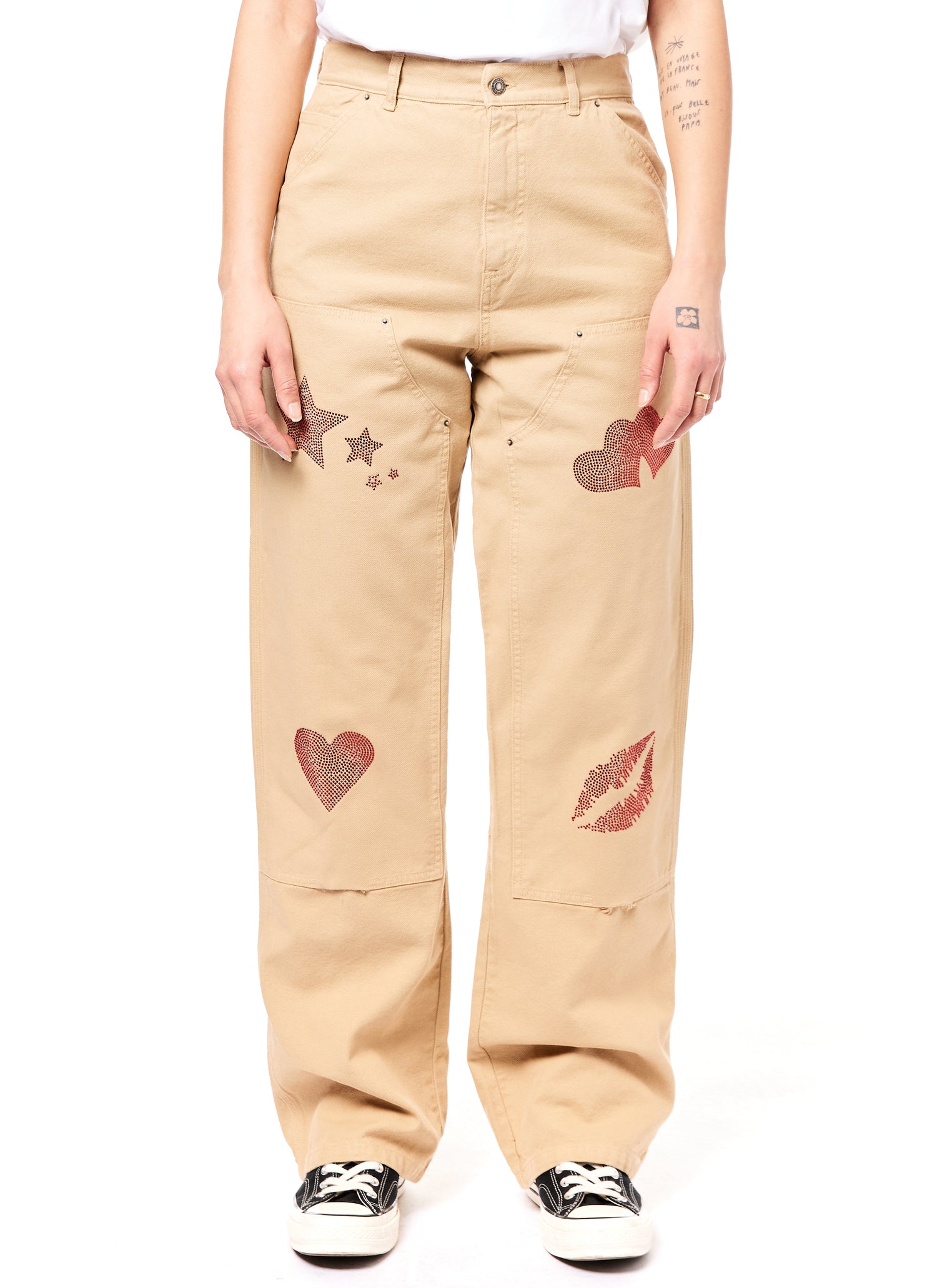 Our classic workpants made from deadstock canvas, bedazzled down the legs with graphics created by our FW24 collaborator Vanna Youngstein.