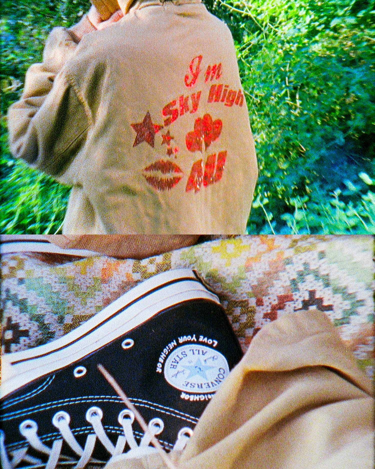 The Fall Winter 2024 season sees the introduction of SHFWW’s first silhouettes for women. Stylist and designer Vanna Youngstein, known for her modernized spin on 2000s clothing, as a graphic partner for the collection. “I’m Sky High 4U '' takes its title from one of Youngstein’s graphics