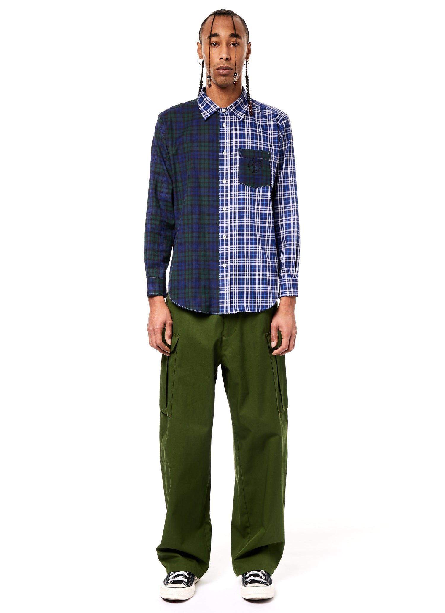 Constructed out of two different deadstock Comme des Garçon SHIRT pieces, this classic shirt features a split construction and a standard fit.