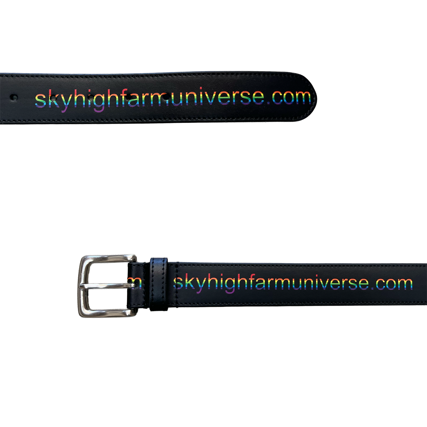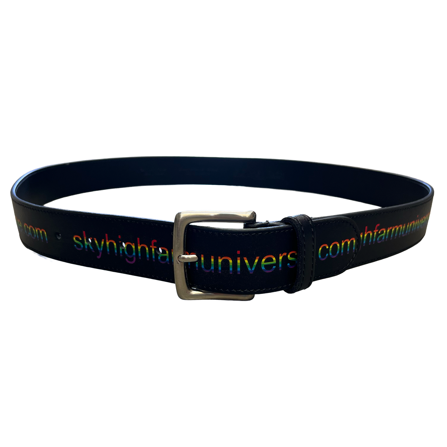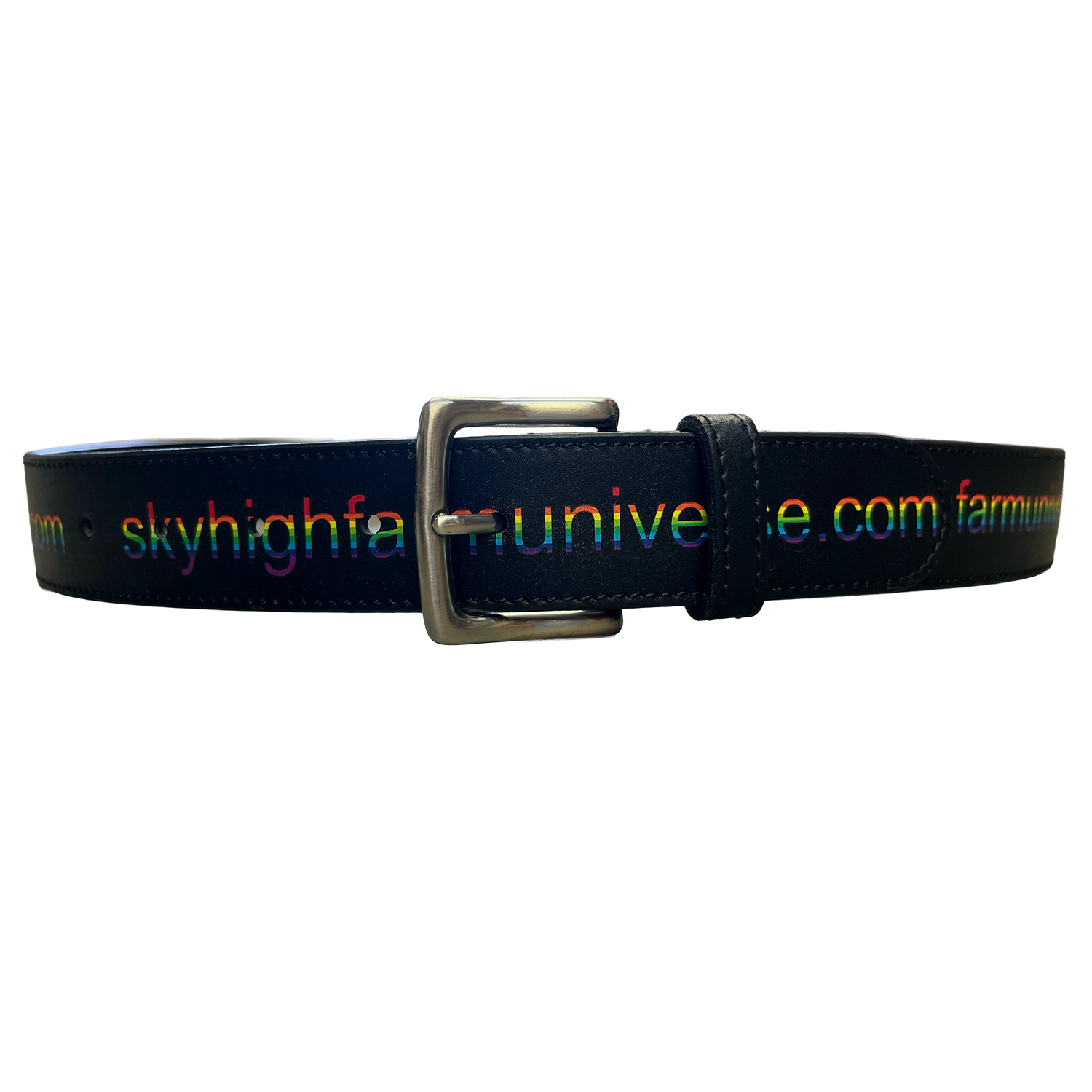 Featuring Skyhighfarmuniverse.com print, and classic metal buckle closure