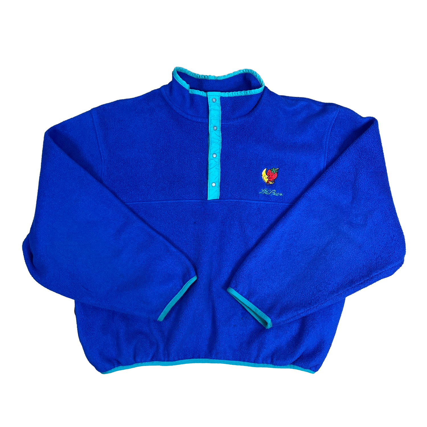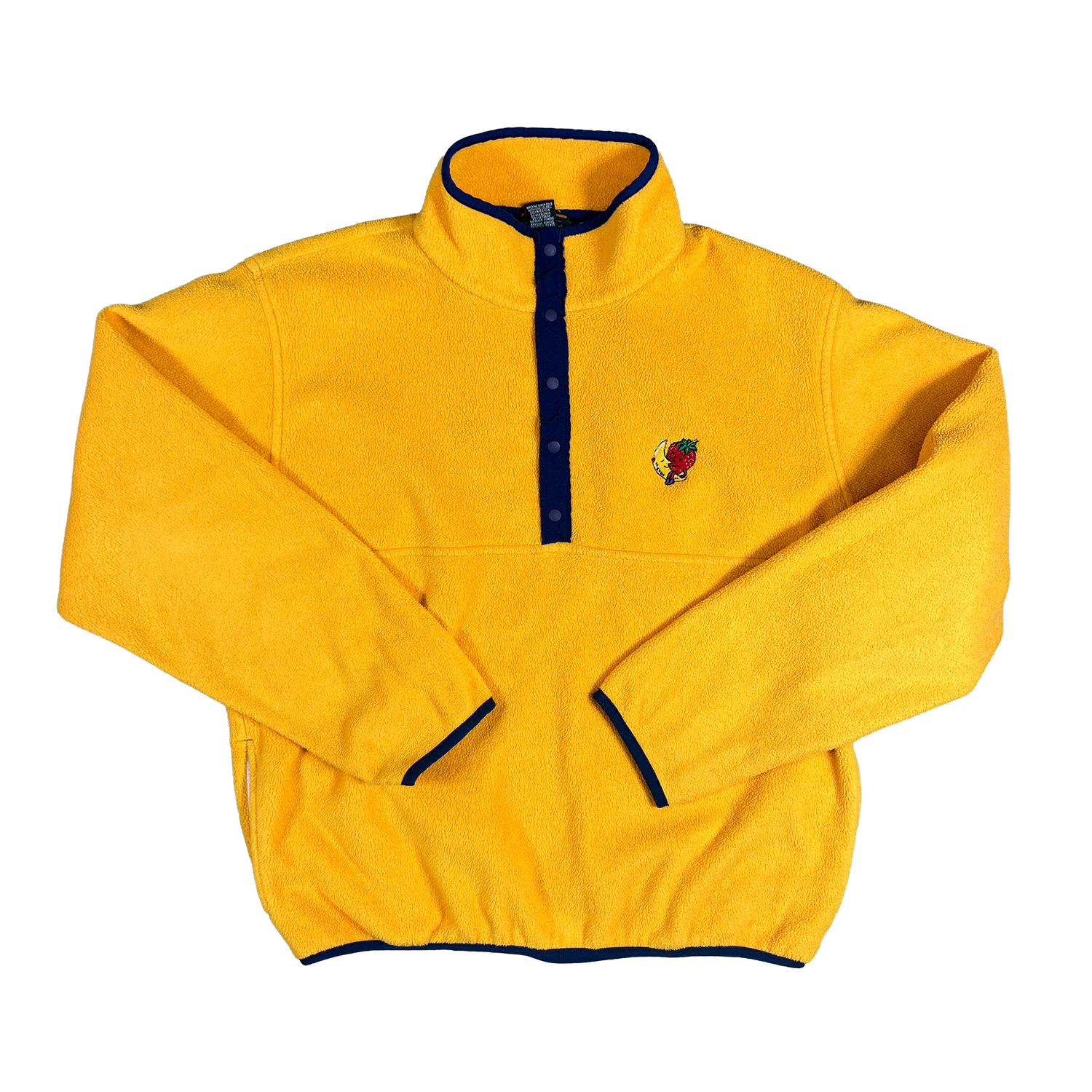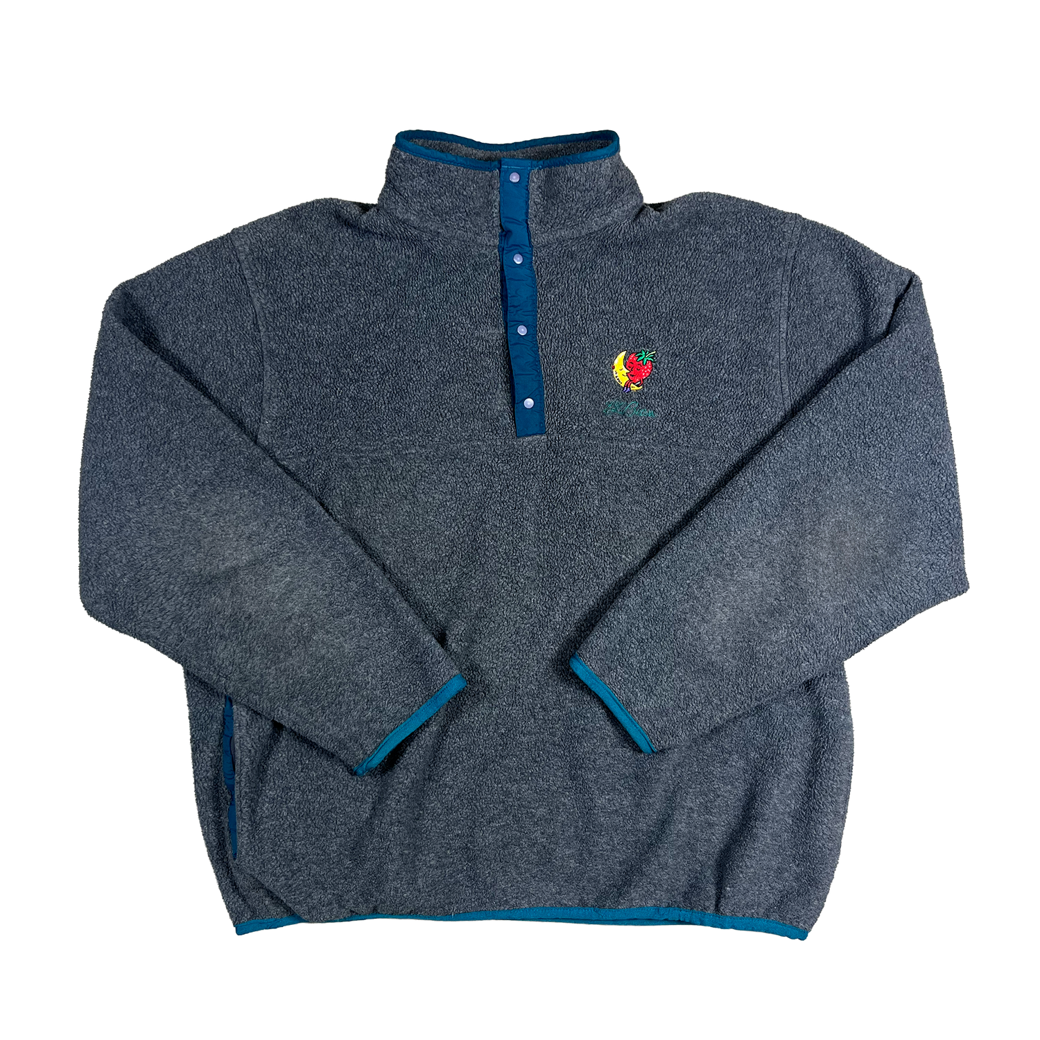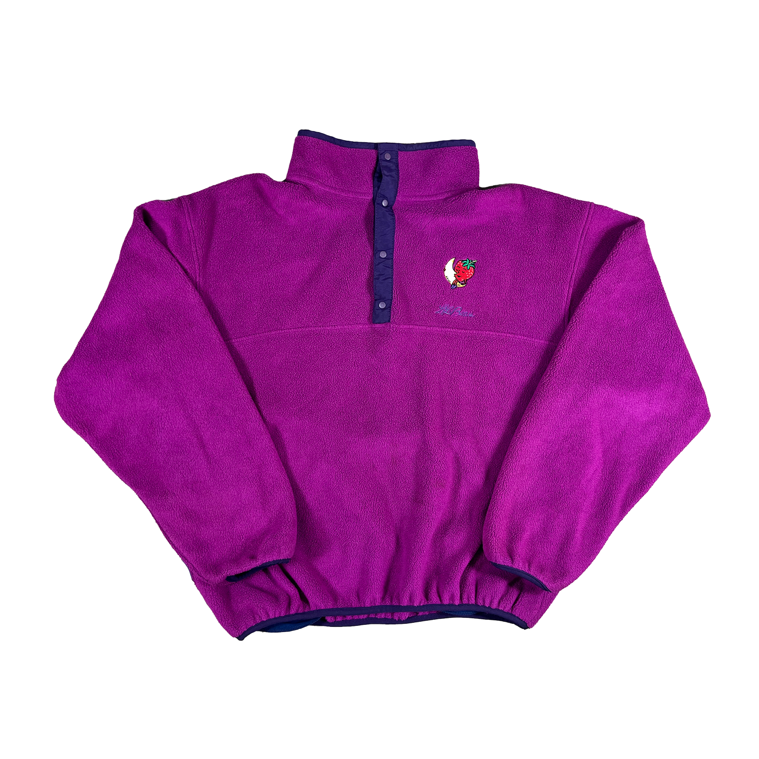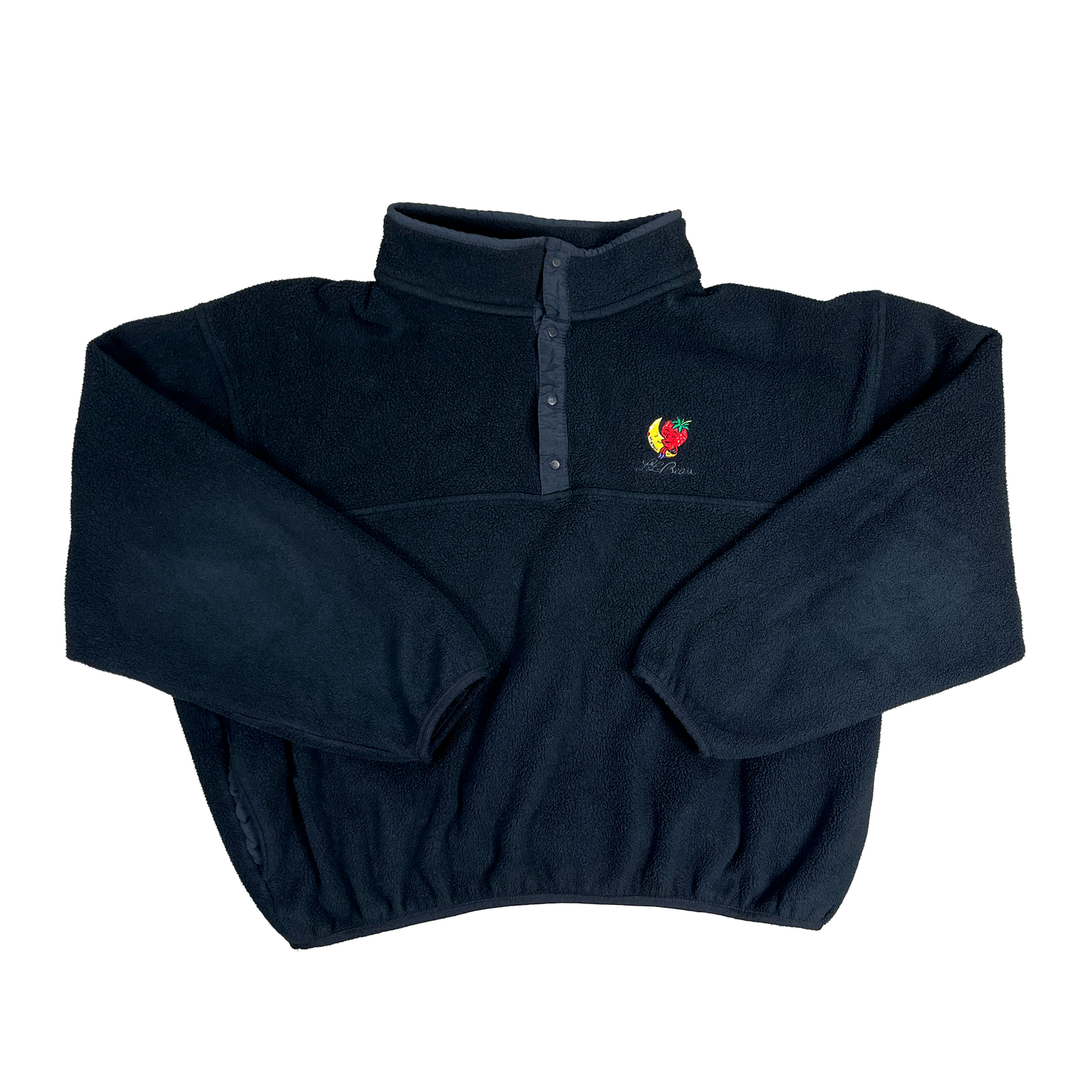 100% polyester, quarter button closure collared fleece completed with side pockets. Sourced and embroidered in New York. Sky High Farm Universe Strawberry Moon logo on the top left chest.