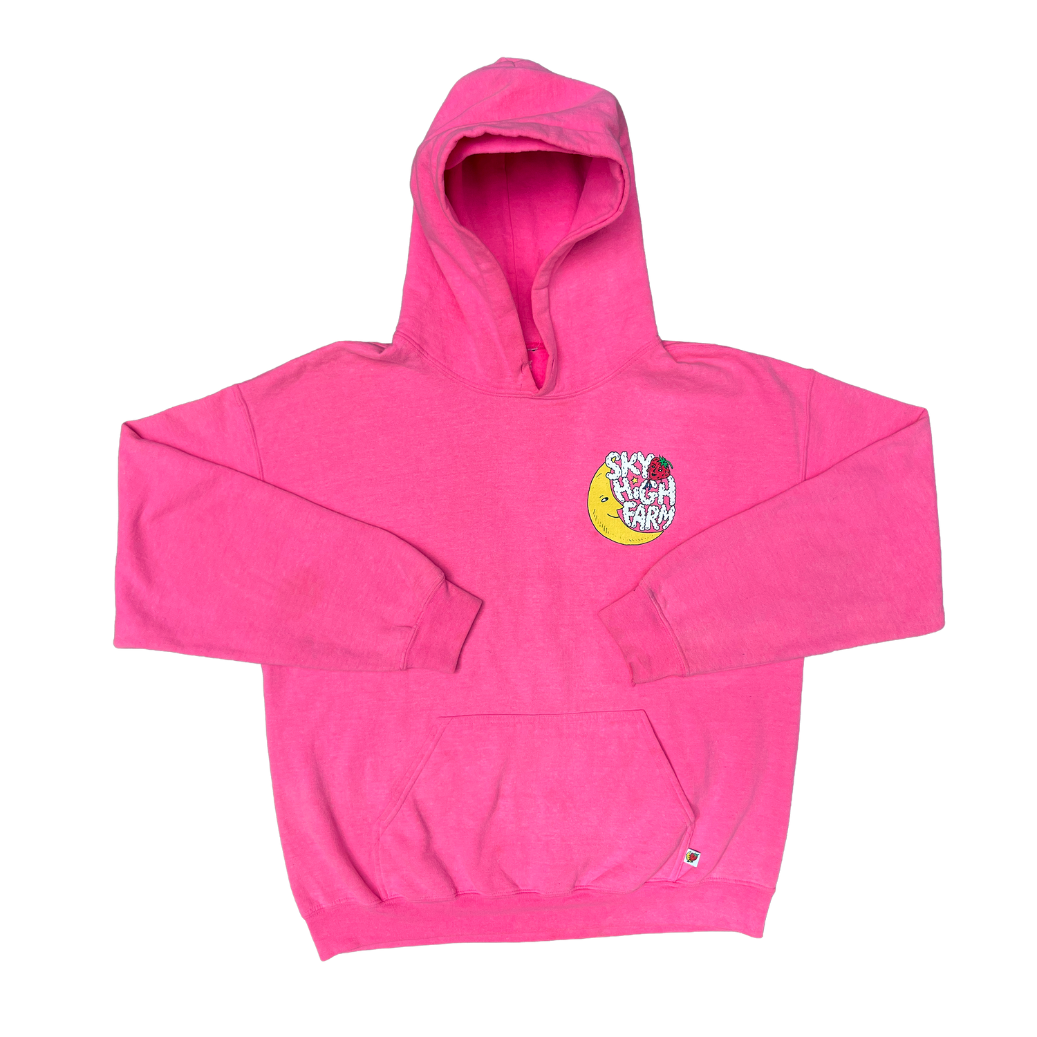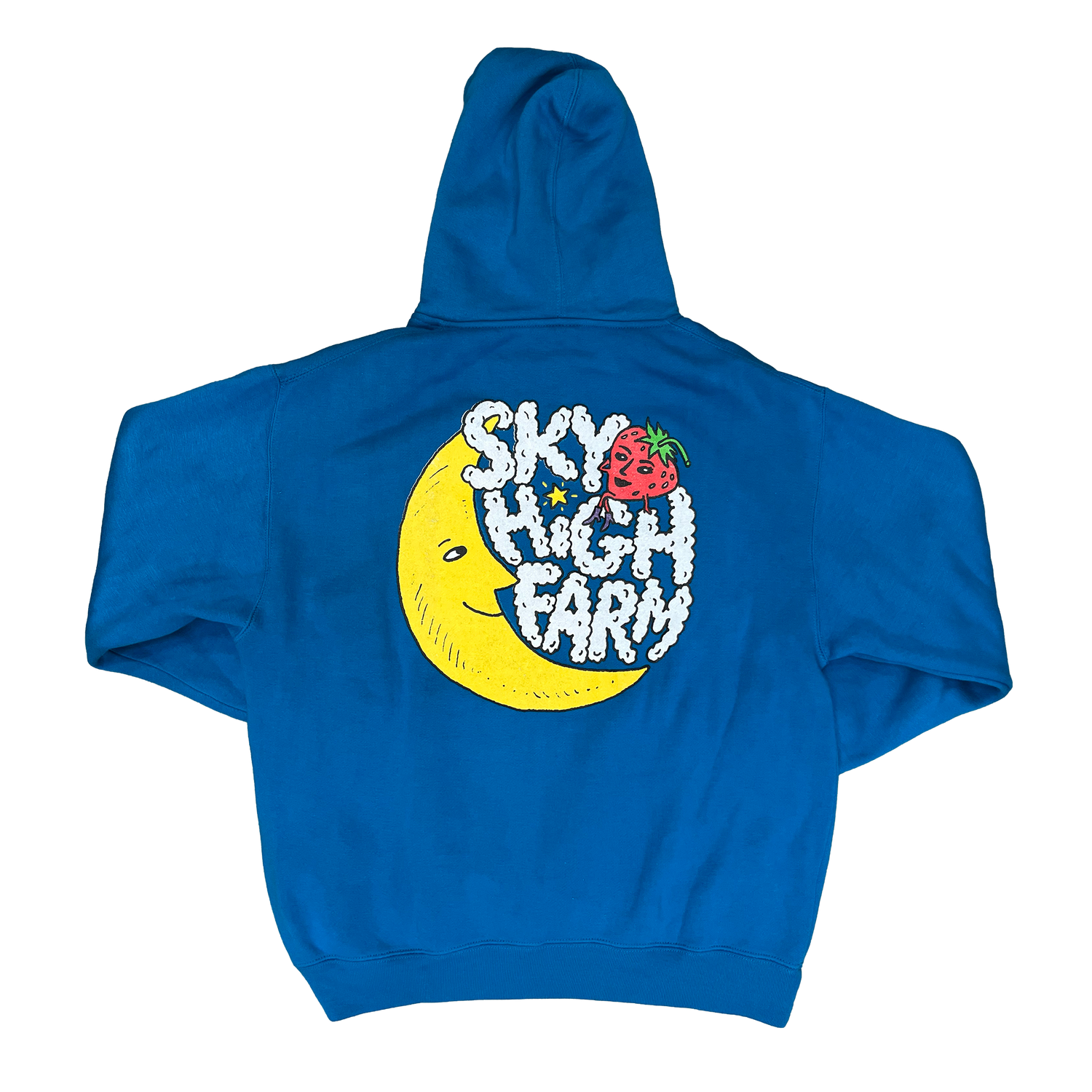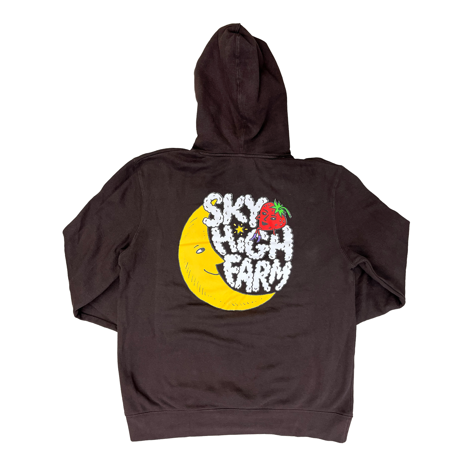 A cotton-poly blend, classic hoodie sourced and screen printed in New York. Sky High Farm Universe logo on the top left chest, across the back the and Sky High Farm Universe Vintage QR code printed on the base of the neck. Scan the QR code on the tag to learn more about the work of Sky High Farm 501(C)3 and its mission to build a more equitable food system.