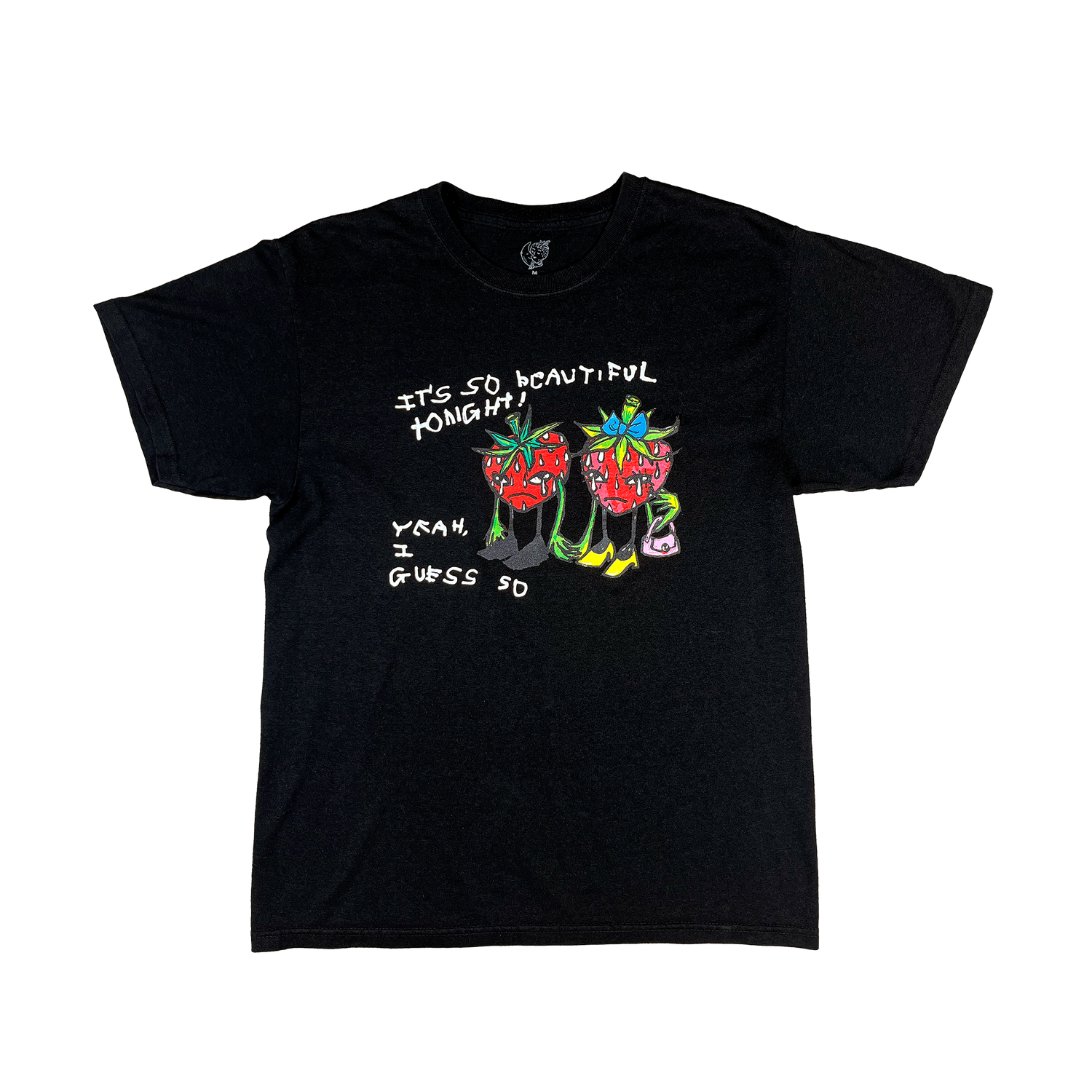 A cotton, classic t-shirt sourced and screen printed in New York. Featuring original Strawbabiez artwork by Eri Wakiyama across the chest. On the base of the neck scan the printed Sky High Farm Universe Vintage QR code to learn more about the work of Sky High Farm 501(C)3 and its mission to build a more equitable food system.